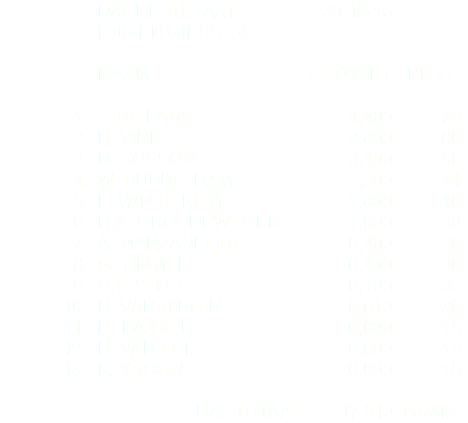 Bert Groenewegen en Nico bosson hebben de koppelwedstrijd gewonnen na loting met 4.400 gram vis