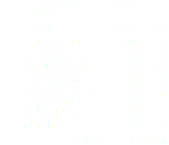 henk van Hilten heeft deze week de competitiewedstrijd in de haven van sliedrecht gewonnen
