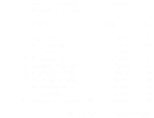 C.p. Slob heeft deze week de competitiewedstrijd aan het Merwedekanaal in Meerkerk gewonnen