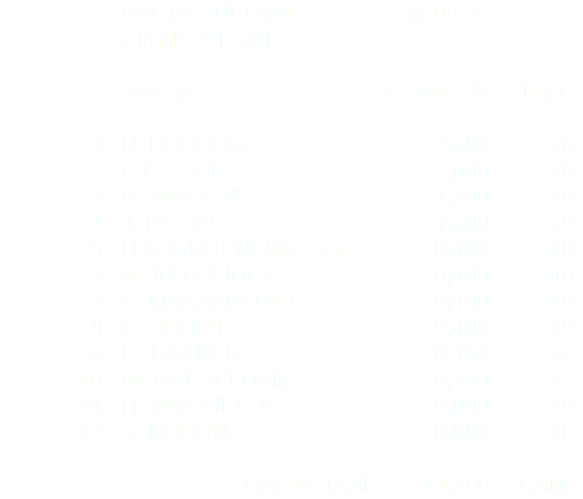 Nico bosson heeft deze week de competitiewedstrijd aan de ammersekade in groot ammers gewonnen