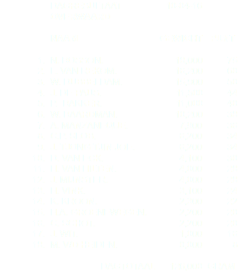 De koppelwedstrijd is gewonnen door Len van Rekum en John de paus zij wisten samen 27.700 gram vis te vangen